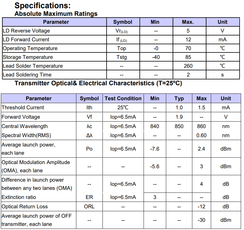 40G BASE–SR4 QSFP+ Optical Engine Preliminary OEM ODM
