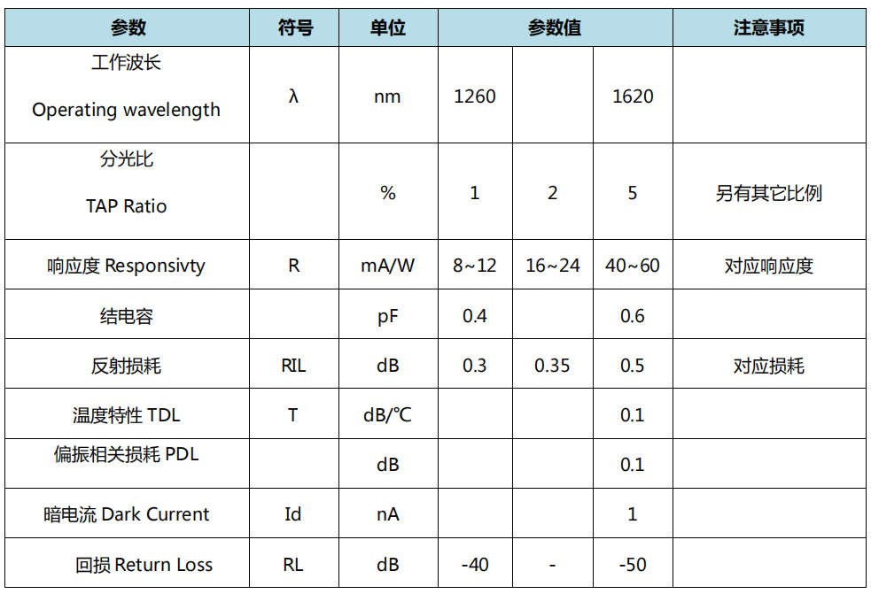 / Home /The TAP PD adopts high-performance InGaAs/InP PIN photodiode packaging internally. Based on its unique optical design, the product has the advantages of high responsiveness, low dark current, and high reliability. Due to its compact structure and small size, it is easy to integrate into high-density Tap PD fiber optic communication systems.